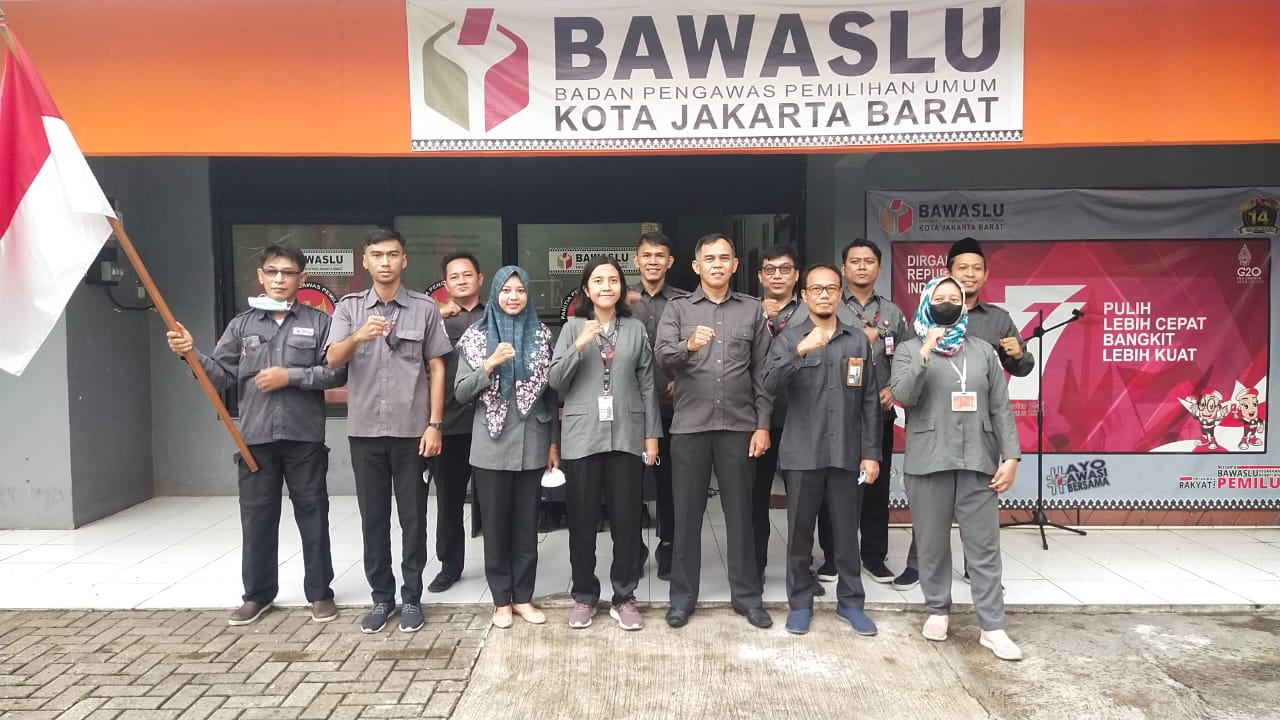 Jakarta Barat, 26 Desember 2022, Hari Senin merupakan hari apel rutin yang dilaksanakan oleh seluruh Bawaslu pada tingkat RI, Provinsi dan Kabupaten/Kota seluruh Indonesia. Tentunya Bawaslu Kota Jakarta Barat melaksanakan apel rutin walupun ditemani hujan yang telah mengguyur sejak pagi. Di atas langit Kota Jakarta Barat sedang mendung, sehingga matahari tidak terlihat, serta cuaca menjadi sejuk dan dingin.