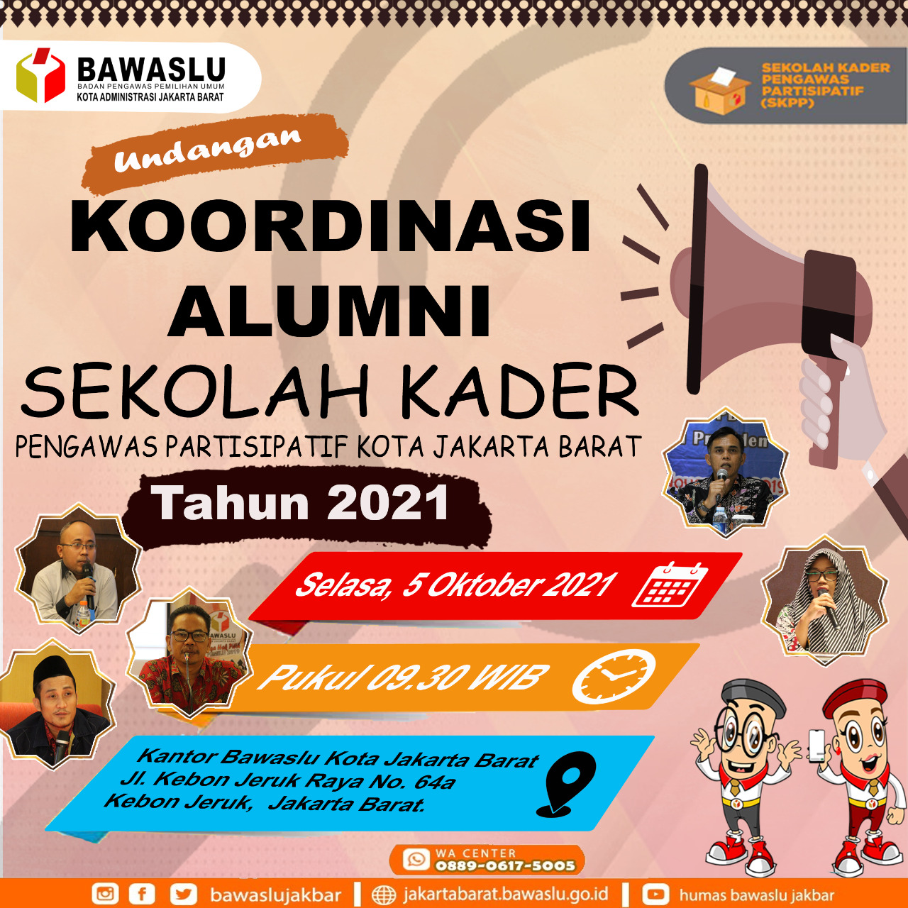 Acara sekolah ini telah diselenggarakan secara luring pada angkatan pertama dan secara daring pada angkatan kedua oleh karena itu Bawaslu Jakarta Barat mengadakan acara "Koordinasi Alumni Sekolah Kader Pengawas Paritisipatif" yang diselenggarakan pada tanggal 05 Oktober 2021 pukul 09.30 WIB di Kantor Bawaslu Kota Administrasi Jakarta Barat. Acara dibuka langsung oleh Ketua Bawaslu Kota Jakarta Barat yaitu Bapak Oding Junaedi, SH. Beliau menyampaikan tahapan pemilu 2024 sudah mulai berjalan pada tahun 2021 ini.