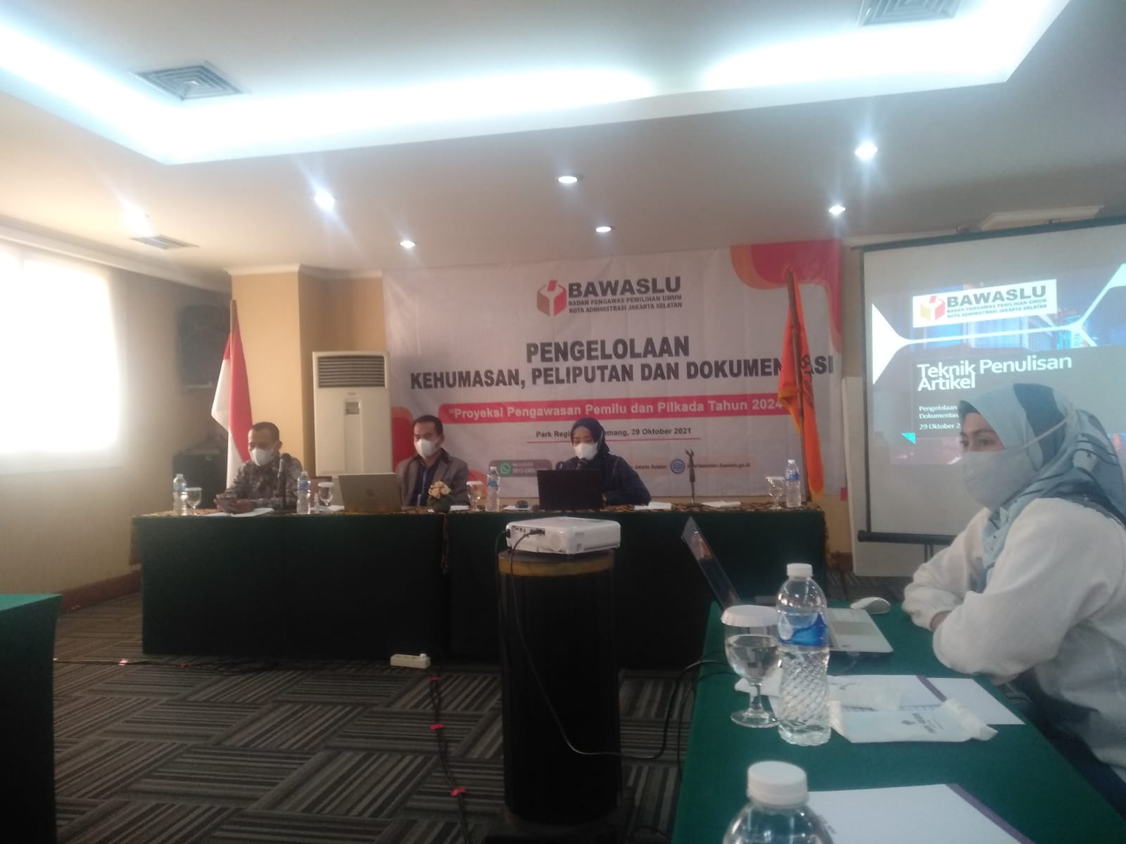 Kegiatan ini menghadirkan koordinator Divisi Kehumasan Bawaslu Provinsi DKI Jakarta Siti Khofifah, Ketua dan Anggota Bawaslu Kota Administrasi Jakarta Selatan dan juga seorang dosen komunikasi dari UPN Veteran yang sekaligus menjadi narasumber pada acara tersebut. Hal ini dimaksudkan agar seluruh peserta mendapatkan pengetahuan lebih lagi tentang bagaimana mengelola kehumasan terutama untuk penulisan artikel maupun berita untuk dapat memberikan informasi dan komunikasi kepada masyarakat luas mengenai Kepemiluan dan Bawaslu.