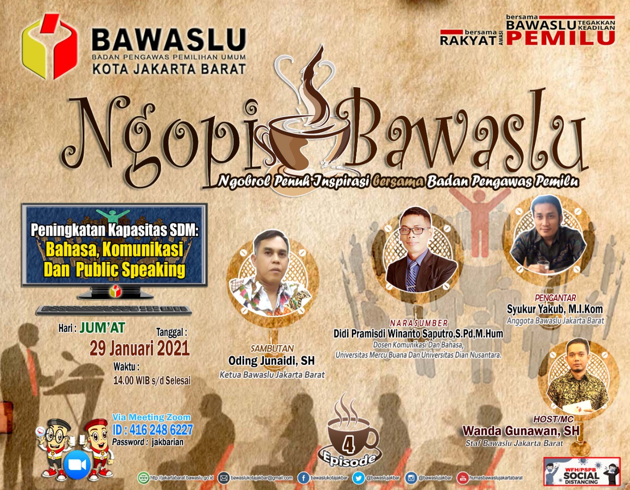 ‘Ngopi Bawaslu’ Season 4 dengan Tema “Peningkatan Kapasitas SDM: Komunikasi, Informasi dan Public Speaking”.