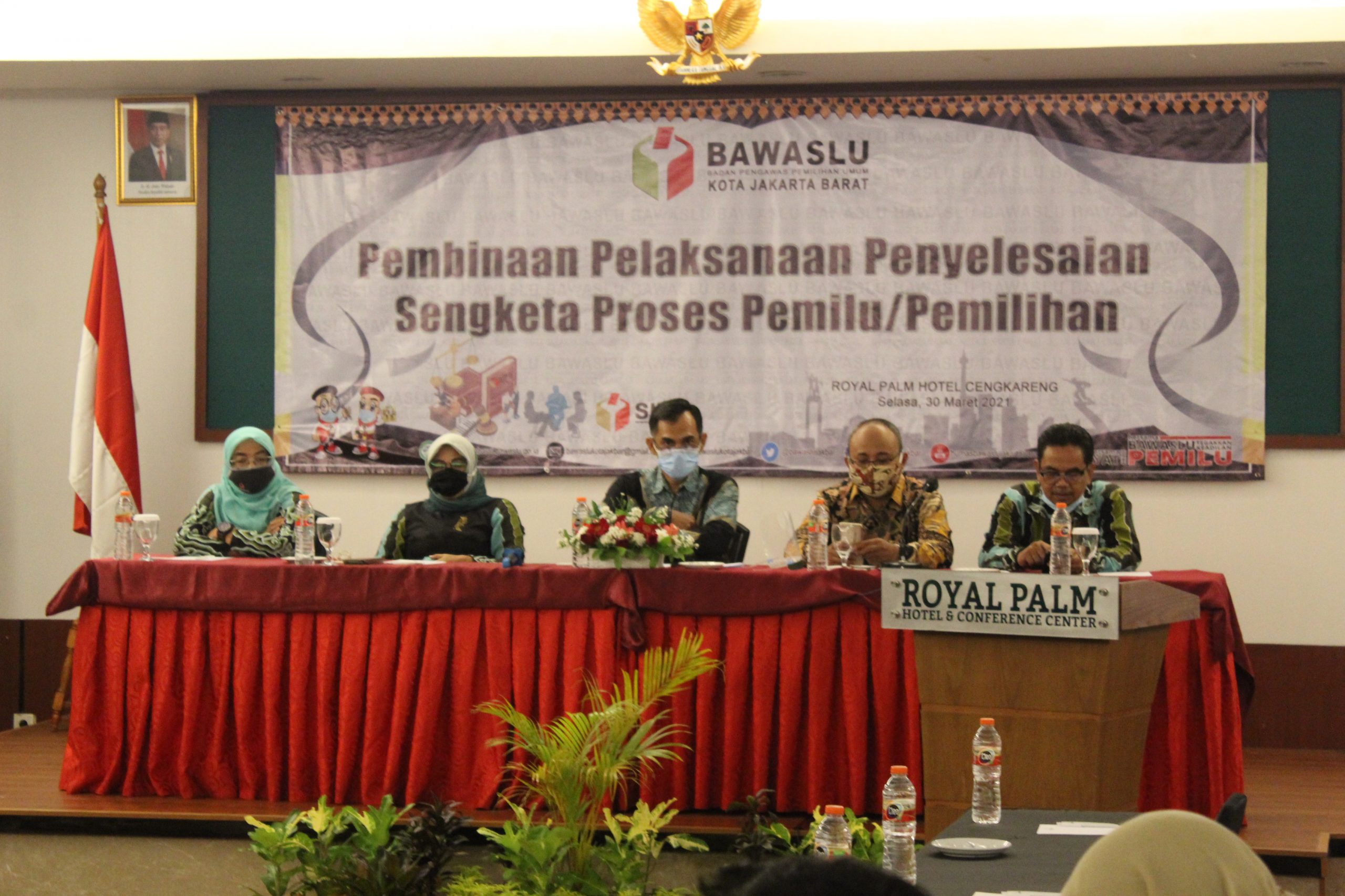 Jakarta - Bawaslu Kota Adm. Jakarta Barat pada hari Selasa tanggal 30 Maret 2021 kembali menyelenggarakan kegiatan PEMBINAAN PELAKSANAAN PENYELESAIKAN SENGKETA PROSES PEMILU / PEMILIHAN di Hotel Royal Palm Jakarta, tepatnya dimulai pada pukul 13.00 WIB. Kegiatan tersebut dihadiri total ada 19 peserta yang mengikuti kegiatan dari awal sampai selesai. Peserta yang hadir berasal dari berbagai unsur yang saling berhubungan dalam proses sengketa, yaitu dari kepolisian Jakarta Barat, KPU Jakarta Barat, Sudin Disdukcapil Jakarta Barat, Satpol PP Jakarta Barat, Perwakilan Partai Gerinda, Perwakilan Partai PAN, Perwakilan Partai PPP, Perwakilan Partai PDIP, Perwakilan Partai Demokrat, Ketua dan Anggota Bawaslu Jakarta Barat, BPP Bawaslu Jakarta Barat, dan staff teknis Bawaslu Jakarta Barat.