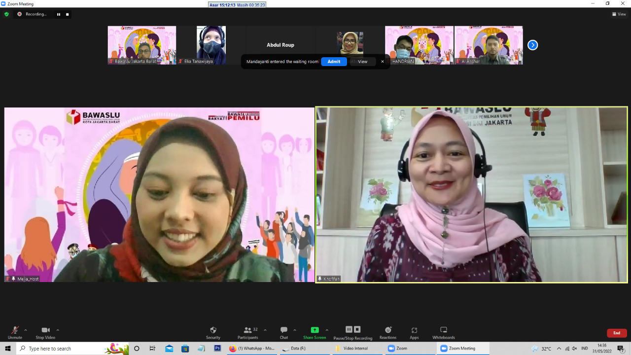 Diskusi tersebut diselenggarakan secara daring melalui zoom meeting dan youtube Bawaslu Kota Jakarta Barat. Acara yang diselenggarakan pada tanggal 02 Juni 2022 pukul 14.00 ini dihadiri oleh sejumlah tokoh penting yang berpengalaman di bidang kepemiluan yaitu Siti Khofifah selaku anggota Bawaslu Provinsi DKI Jakarta dan Kurniasih Tamzah selaku anggota Komite Independen Pemantau Pemilu (KIPP).