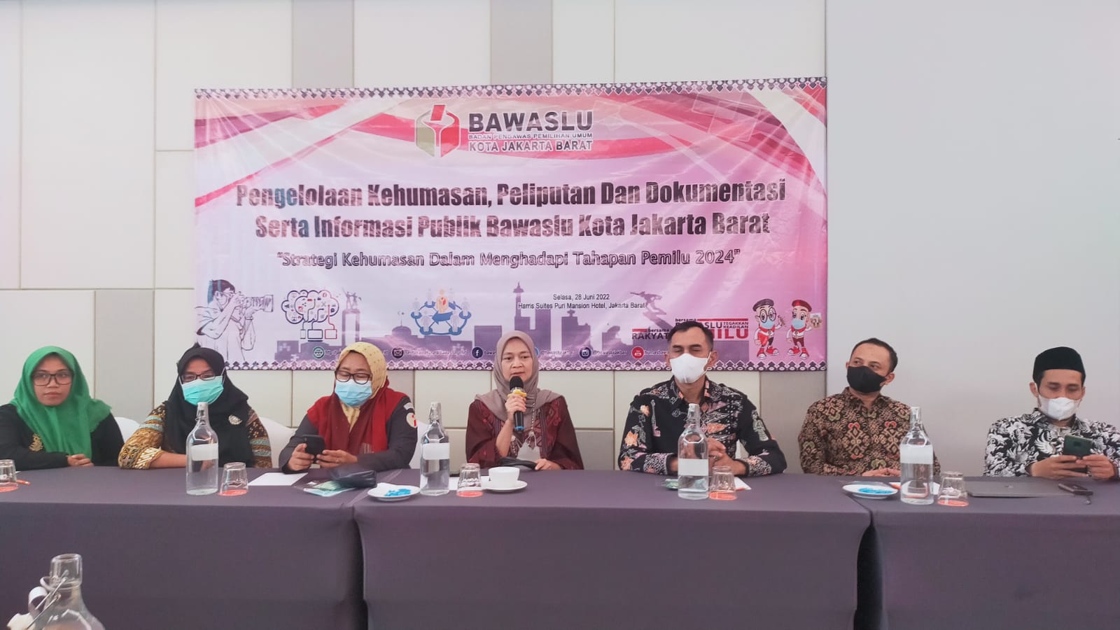 Kegiatan ini dihadiri Anggota Bawaslu Prov. DKI Jakarta, seluruh jajaran sekretariat Bawaslu Kota Jakarta Barat, staf pengelola kehumasan Bawaslu Kab/kota se-Provinsi DKI Jakarta, perwakilan Komunitas Kobra Pemilu dan Media bertempat di hotel Harris Suites Puri mansion, Jakarta Barat (28/06/22).