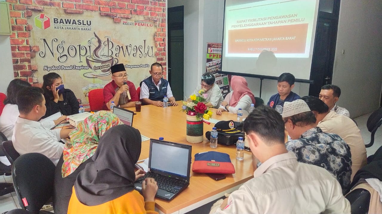 Rabu, 7 Desember 2022, Bawaslu Kota Jakarta Barat mengadakan acara Rapat Fasilitasi Pengawasan Penyelenggaraan Tahapan Pemilu Bawaslu Kota Administrasi Jakarta Barat di Kantor Sekretariat Bawaslu Kota Jakarta Barat. Acara dihadiri oleh para Ketua Panwaslu Kecamatan dan Sub Koordinator Bina Idewasbangpol Kota Jakarta Barat yaitu Jan Kristian Saragih. Dipimpin oleh Ahmad Zubadillah selaku Anggota Bawaslu Kota Jakarta Barat sekaligus Koordinator Divisi Pencegahan, Partisipasi Masyarakat, dan Hubungan Masyarakat. Berdasarkan arahan dari beliau setiap Panwaslu Kecamatan yang turun ke lapangan harus membuat form A dan membuat uraian terhadap tahapan yang sudah dilalui beserta kendala yang dihadapi kemudian solusi yang sudah diambil.