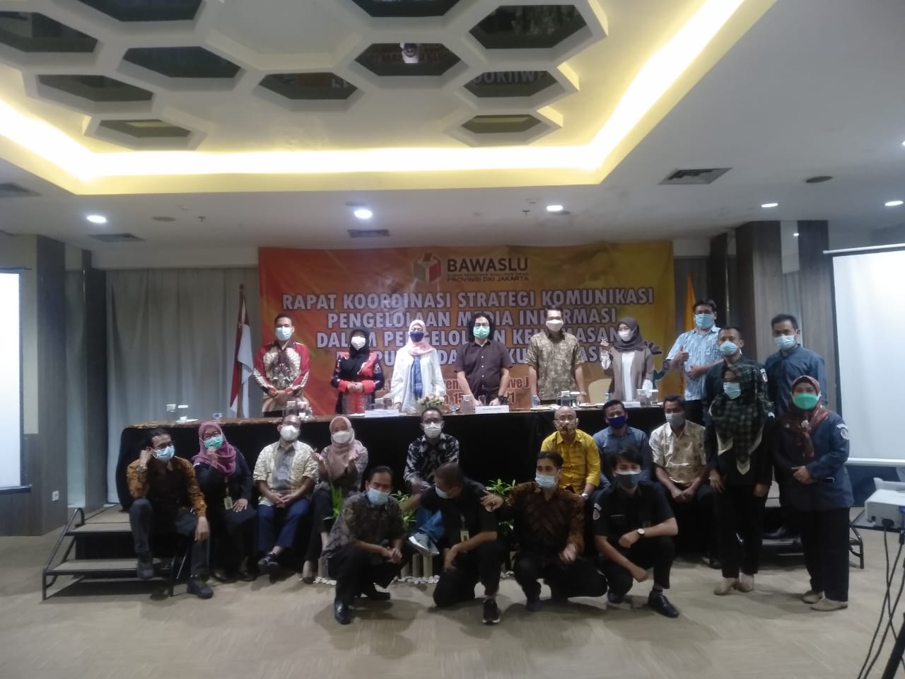 Jakarta – Selasa 15 Juni 2021 pukul 09:00 WIB Bawaslu Provinsi DKI Jakarta melaksanakan Rapat Koordinasi Strategi Komunikasi Pengelolaan Media Informasi Pada Pengelolaan Kehumasan, Peliputan Dan Dokumentasi bertempat di Best Western Primier The Hive Hotel Jakarta Timur. Kegiatan ini dihadiri Ketua dan Anggota Bawaslu Provinsi DKI Jakarta, Kepala Sekretariat DKI Jakarta, Kepala bagian di lingkungan Bawaslu DKI Jakarta, Kasub di lingkungan Bawaslu DKI Jakarta, serta Anggota Bawaslu Kab/Kota Se-DKI Jakarta dan staff yang hadir sebagai peserta. Acara tersebut tetap mengikuti protokol kesehatan dengan menjaga jarak dan memakai masker.