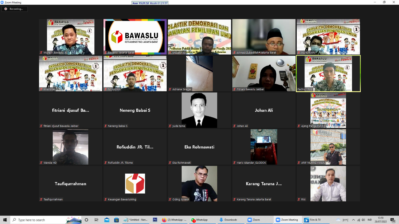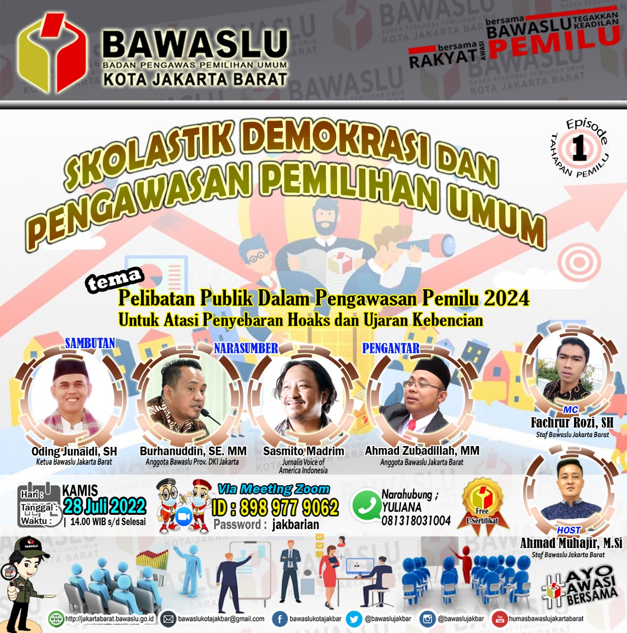 Bawaslu Kota Jakarta Barat,- Tahapan pemilu terus bergulir, namun tidak membatasi kreatifitas Bawaslu Kota Jakarta Barat dalam memperkaya dan membagi ilmu pengawasan pemilu ke publik. Perdana pada 28 Juli 2022 ini dihadirkan program baru berjudul Skolastik Demokrasi dan Pengawasan Pemilihan Umum Bawaslu Kota Jakarta.