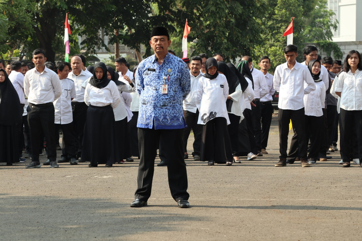 Kamso (Kepala Sekretariat Bawaslu Kota Adm Jakarta Barat) memimpin Upacara Peringatan Hari Olahraga Nasional ke-36 di Lapangan Bawaslu Provinsi DKI Jakarta.