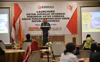 Bogor, Badan Pengawas Pemilihan Umum - Ketua Bawaslu Abhan mengesahkan peluncuran aplikasi Sistem Informasi Hubungan Antarlembaga Bawaslu (Si Jari Hubal).