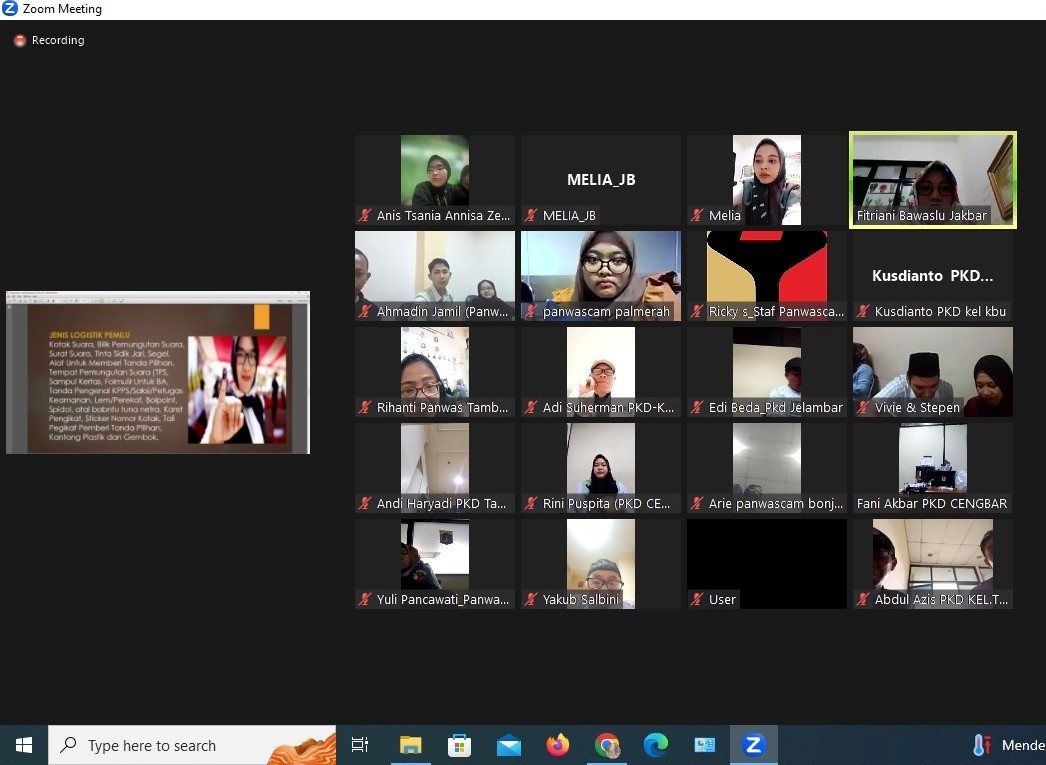 Pemilu 2024 kian dekat, saat ini sudah masuk tahapan krusial berupa distribusi logistik Pemilu 2024. Pelaksanaan Pemilu 2024 secara serentak bisa berisiko pada kesiapan/ketersediaan gudang logistik Pemilu 2024. Oleh sebab itu, untuk mengantisipasi hal-hal yang dapat menghambat distribusi logistik Pemilu 2024, Bawaslu Kota Jakarta Barat menggelar Upaya penguatan kapasitas SDM Pengawas Pemilu dalam bentuk daring melalui media Zoom Meeting.