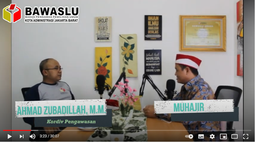 Bawaslu Kota Jakarta Barat sebagai komponen utama dalam menjaga hak pilih warga Kota Jakarta Barat memiliki pimpinan yang memiliki kemampuan dalam hal pengawasan kepemiluan dan juga menjaga hubungan antar lembaga, baik pada masa tahapan pemilu atau masa persiapan menuju tahapan pemilu. Ialah Ahmad Zubadillah yang memimpin penuh tanggung jawab dalam mengawasi kepemiluan di wilayah Kota Jakarta Barat. Di era new normal ini Bawaslu Kota Jakarta Barat dengan program podcast menampilkan edisi khusus bincang-bincang mengenal lebih dekat sosok Ahmad Zubadillah. Dipandu oleh Ahmad Muhajir selaku staf divisi pengawasan dan hubungan antar lembaga sehingga lebih santai namun tetap informatif.