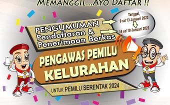 Panwaslu Kecamatan akan segera membuka pendaftaran Panwaslu tingkat kelurahan/desa yang akan mengawasi pemilu 2024. Mulai hari ini (Senin, 9 Januari 2023), tahapan pembentukan Panwaslu Desa/Kelurahan sudah memasuki tahapan pengumuman pendaftaran yakni mulai 9 hingga 13 Januari 2023.