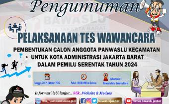 Berita humas Jumat, November 18, 2022 - 13:18 Atasi Sengketa Pemilu, Bawaslu Jakarta Barat Melakukan Pembinaan Penyelesaian Sengketa Proses Pemilu Jakarta Barat, 18 November 2022 humas Senin, November 7, 2022 - 08:52 Jalin Kerjasama dengan Universitas Bina Nusantara, Bawaslu Kota Jakarta Barat Sukses Laksanakan Tes Tertulis Bagi 199 Peserta Seleksi Calon Panwascam Komitmen kerjasama yang dijalin Bawaslu Kota Jakarta Barat dengan instansi Pendidikan, Universitas Bina Nusantara dalam persiapan dan pelaksanaan tes tertulis calon pengawas pemilu Kecamatan se Kota Jakarta Barat. humas Jumat, November 4, 2022 - 08:41 Pelantikan Dan Pembekalan Panwas Kecamatan Se-Kota Jakarta Barat Bawaslu Kota Jakarta Barat,- Bawaslu Kota Jakarta Barat laporkan hasil rekrutmen panwas kecamatan se-kota Jakarta Barat berjalan dengan kondusif. humas Rabu, Oktober 19, 2022 - 06:17 Jadwal Sesi Tes Wawancara Calon Panwaslu Kecamatan Se-Jakarta Barat Silahkan download Jadwal dan Sesi Tes Wawancara Calon Anggota Panwaslu Kecamatan pada link dibawah ini : https://bit.ly/JadwalTesWawancaraPanwascam humas Selasa, Oktober 18, 2022 - 01:10 Pengumuman Hasil Tes Tertulis Calon Anggota Panwaslu Kecamatan untuk Kota Jakarta Barat Nama-Nama Calon Anggota Panwaslu Kecamatan yang dinyatakan Lulus Seleksi Tes Tertulis First page « Awal Halaman sebelumnya ‹‹ … Pengawasan 40 Pengawasan 41 Pengawasan 42 Pengawasan 43 Halaman sekarang 44 Pengawasan 45 Pengawasan 46 Pengawasan 47 Pengawasan 48 … Halaman berikutnya ›› Last page Akhir » Pencarian Saran dan Pengaduan Saran dan pengaduan dengan untuk kemajuan Bawaslu Ajukan